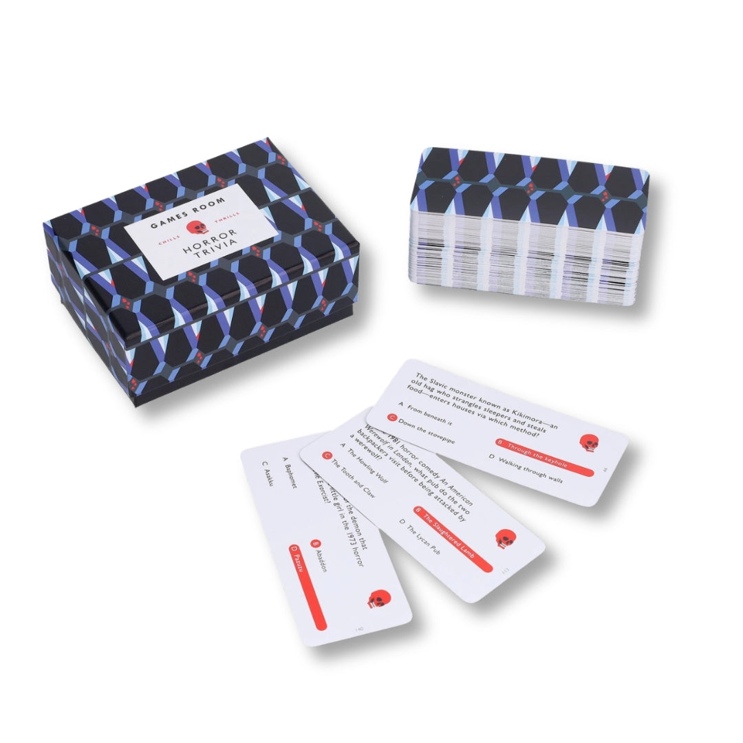 Calling all horror fiends and children of the night! Time to test your spooky smarts with the ultimate horror trivia deck. Covering everything from horror movies and pop culture to haunted places, monster lore, and more!